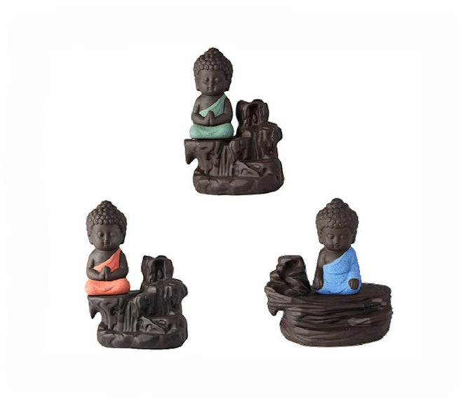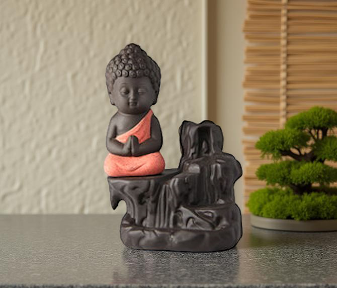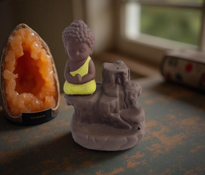 Este quemador de incienso con figura de Buda monje es una pieza delicada y funcional que aúna espiritualidad, intención y armonía sensorial.