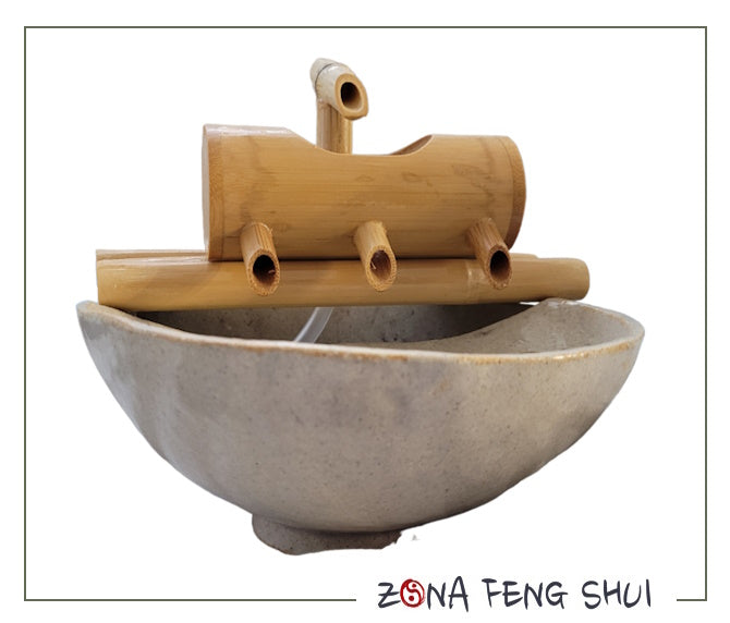 FUENTE DE AGUA REDONDA CERÁMICA Y BAMBÚ