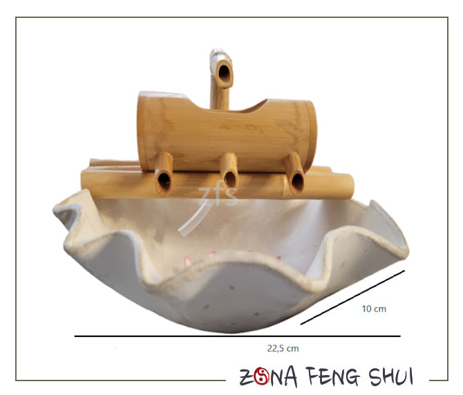 FUENTE DE AGUA CONCHA CERÁMICA Y BAMBÚ