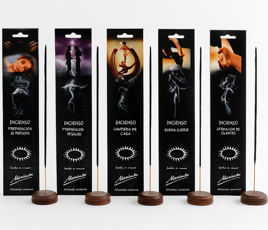 Esta colección de inciensos artesanales ha sido creada siguiendo métodos tradicionales de alquimia, transmitidos de generación en generación. Cada una de las cinco variedades está diseñada para trabajar una intención específica en el ámbito energético y espiritual: limpiar, proteger, atraer y armonizar.